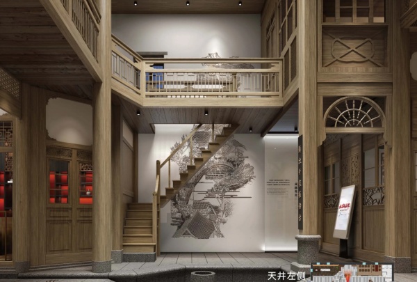 原建筑序廳空間為6900mm寬、10000mm進深, 擁有良好的縱深感,為此,我們設計孫中山鄧世昌、張弼士以圓雕的形象迎面走來,背后跟隨諸位膠東革命志士、政軍人物、文藝名人、實業楷模奮勇向前,追求民族的獨立和解放。觀眾可穿行其中,感受與這些名人同行的信念,兩側藝術肌理墻以開放的形態寓意開拓、拼搏精神的延續與傳播。