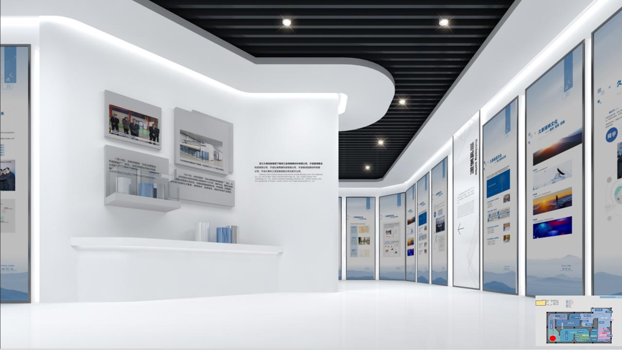 2、創意展項互動:結合互動式墻面、沉浸式體驗區等創新展項,引導觀眾深度了解企業品牌形象與發展脈絡。