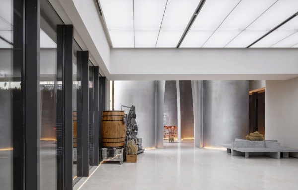 原建筑序廳空間為6900mm寬、10000mm進深, 擁有良好的縱深感,為此,我們設計孫中山鄧世昌、張弼士以圓雕的形象迎面走來,背后跟隨諸位膠東革命志士、政軍人物、文藝名人、實業楷模奮勇向前,追求民族的獨立和解放。觀眾可穿行其中,感受與這些名人同行的信念,兩側藝術肌理墻以開放的形態寓意開拓、拼搏精神的延續與傳播。