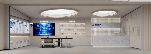 展廳平面方案打破常規,以不規則空間為核心,創造出一種自由而靈動的布局。四面墻上,各類暖通產品錯落有致地展示著。